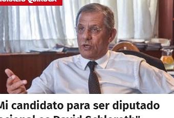 Tenemos dos elecciones. Por la de Diputados, he charlado con todos los representantes de Cambiemos, e independientemente de que están las PASO, yo claramente apoyo y he encontrado consenso, en apoyar la candidatura para las PASO y para las abiertas a David Schlereth. Nosotros somos el oficialismo, y David tiene un gran compromiso con este proyecto nacional. David es afiliado al PRO. Somos parte del oficialismo a nivel nacional. El MPN es un aliado de Nación; por conveniencia, al gobernador (Omar Gutiérrez) lo veo muy entusiasmado, pero hay gente que no piensa como él como (el vicegobernador) Rolando Figueroa. Ellos son una diversidad; nosotros somos oficialistas, y David es el que mejor representa esa idea.