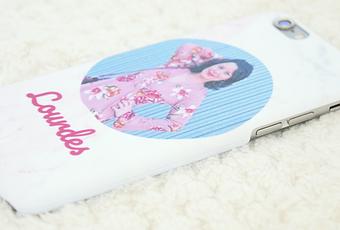 Para que n fuera tan clásica opté por realizar un diseño de mármol rosa y blanco y combinándolos con una fotografía mía en el centro a la vez que le grababa mi nombre. Me parece una funda muy personal a la vez que original.