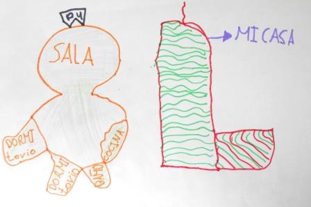 Objetivos:- Elaborar casas con pequeños cartones ( 10x10 centímetros ), dibujar y pintar en ellos las habitaciones con sus muebles y enseres.- Agrupar las casas y formar una ciudad.- Apreciar el espacio tridimensional para la construcción de la casa y ciudad.Se desarrollo en las siguientes fases:1.- Escrito sobre la casa y sus habitaciones, con su dibujo.2.- Dibujo a lápiz de los muebles y artefactos, sobre los dos lados del cartón.3.- Pintura con témpera.4.- Pintura con pasteles al óleo y marcadores.5.- Armado de la casa.6.- Elaboración de la ciudad, con dibujos.Materiales:cartón cortado en cuadrados y pintados de blanco, lápiz, borrador, marcadores, témperas, pinceles, 1 pliego de papel empaque y pasteles oleosos.