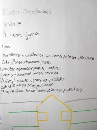 Actividades:1.- Los niños/as escribieron a lápiz en una hoja sobre la casa y sus habitaciones, objetos y muebles de la misma.2.- Dibujaron teniendo en cuenta lo que habían escrito, cada estudiante tenía seis o siete cartones.Algunos niños ya comenzaban a armar la casa.