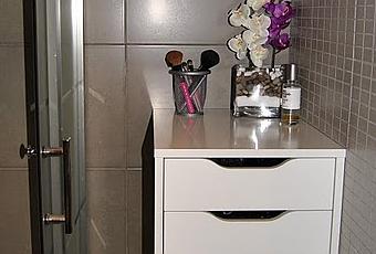 Tiene 9 cajones y ahora mismo están todos con cosinas, a ver, no de maquillaje, no tengo tanto!! Pero si que tengo además de el maquillaje mis potis, productos para el cabello, secador de pelo, plancha... en fin esas cosas ^^