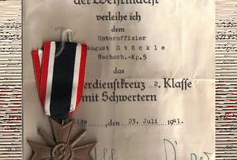 Una vez que ya os mostré la historia de mi Ostmedaille (pincha aqui para verla), voy a pasar a enseñaros el resto de mi colección. El 90% de las medallas que tengo (solo alemanas por ahora) van acompañadas de su correspondiente documento de concesión. Solo compro medallas para mi colección que acompañen un documento ya que para mi es importante saber algo más sobre la medallas, y por supuesto saber a quien fue otorgada. En consecuencía, me gustaría contaros todo lo que haya averiguado sobre la medalla, que en principio no suele ser mucho a no ser que te encuentres alguna sorpresa. Medalla concedida al Unteroffizier August Stöckle