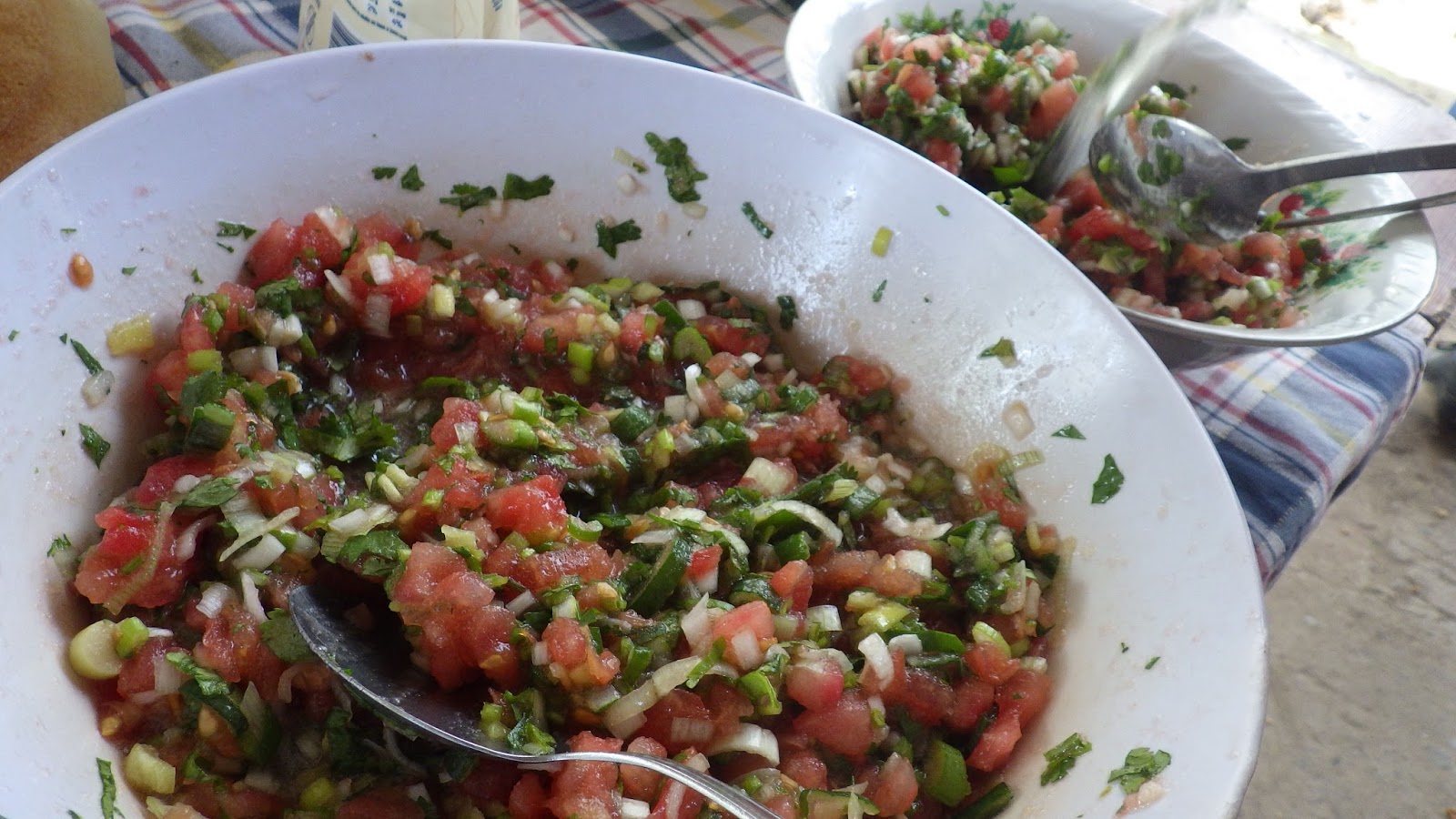 And, hell yeah, it was! Each member of the family had a task. Men were in charge of anything related with heat: the asado, the oven for the empanadas. Women prepared all the salads, chopped the pebre (the usual spread for bread in Chile which is tomato, onion, garlic, chilli and parsley chopped in little cubes), they cook the filling for the empanadas (named pino: slow cooked onion, ground meat, an olive and pieces of boiled egg), stuff them and prepare mote con huesillo (a dessert made of cooked wheat and rehidrated dried peaches served in light syrup). The youngest members play around and the teenagers and young adults prepare terremoto for everyone which is a drink that literally stands for earthquake. It takes the idea of a spider, but they use white young pipeño wine instead of a fizzy drink, it´s topped with a scoop of pineapple ice cream, some Fernet and a splash of grenadine.
