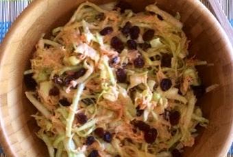 - 1 col - 1 zanahoria- pasas- 3 cucharadas de anacardos crudos- 1 cucharada de piñones- zumo de medio limón- pasas- un poco de vinagre- sal