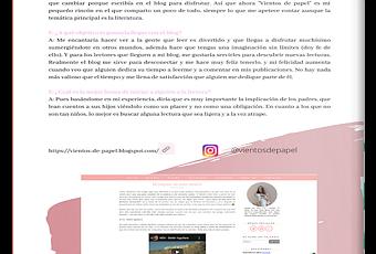 Si os soy sincera antes de este mes no había leído nunca esta revista pero a partir de ahora pienso estar muy pendiente cada mes a su publicación porque me parece una revista muy muy completa. Me hubiese gustado dejaros por aquí la revista pero no puedo (os dejo con un pantallazo de mi entrevista aunque no se ve muy bien) así que os pongo el link para que os paséis y la bicheeis. LINK AQUÍ