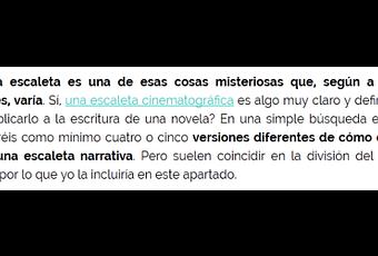 Hace poco leí un artículo en el blog de Gabriella Literaria (blog que, por cierto, aprovecho para recomendaros) donde se explicaban 7 métodos diferentes para planificar una novela. En el primer método ya se hablaba de la escaleta, y Gabriella hacía referencia a ella de la siguiente manera: