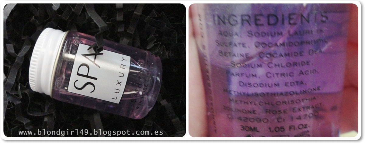¿Qué pone del producto? Está enriquecido con aceite de argán y perfumado con ámbar, este acondicionador dejará tu pelo suave y sedoso.El producto original contiene 30ml y cuesta 9€¿Qué me ha parecido? En principio decir que 30ml no basta para mucho, me parece que para ser tamaño original es muy pequeño y bastante caro. A mi esta cantidad me ha bastado para unas 6 veces (sin abusar), así que no me sale muy a cuenta, me gusta ponerme bastante cantidad. Encuentro que el acondicionador no está demasiado mal, el aroma es muy especial no sabría describir a qué pero me recuerda a otra cosa y no me viene a la mente, a mi madre le pasa como a mi xD es como una vainilla bastante intensa mezclada con algún otro aroma, me gusta el olor que queda una vez enjuagado el cabello porque oliéndolo directamente del envase es muy intenso. El cabello lo deja algo más suave pero yo al tener el pelo tan seco necesito mascarillas porque los acondicionadores se me quedan cortos. Pero para una chica que tenga el cabello en mejores condiciones seguro que le iría muy bien aunque el precio tira para atrás.GEL SPA LUXURY de AINHOA: