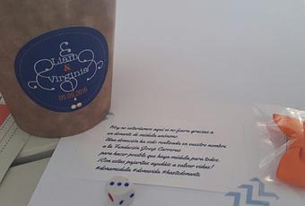 Tenemos muchas ganas de contaros todos los detalles de nuestro gran día, pero estamos esperando a tener las imágenes perfectas que le hagan justicia a un día lleno de magia total. Por ahora, os dejamos lo que fue nuestro pequeño detalle con los invitados. Parece una tontería, pero nosotros no queríamos dar el típico recordatorio que, muchas veces, queda relegado al cajón de los regalitos de boda. Así que aprovechamos la ocasión para, además de colaborar con una pequeña ayuda económica, concienciar a nuestros invitados de la importancia de donar médula.