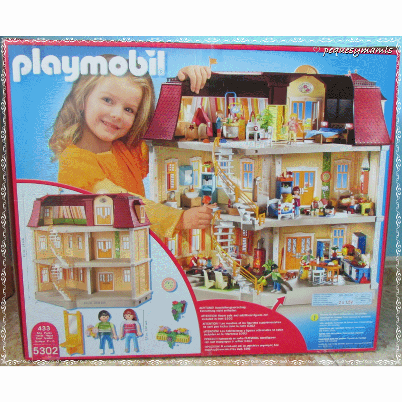 El atractivo de esta casa es su construcción en forma de esquina con dos escaleras exteriores que proporciona una mayor flexibilidad y optimiza mejor el espacio (63x45x61 cm (LxAxP)). Dispone de 7 habitaciones que se venden por separado.Un día en la casa de muñecas podría ser así: desayuno en la espaciosa Cocina y tras ello, los niños yendo al Baño para lavarse los dientes. Necesitan ser rápidos todas las mañanas, de lo contrario pueden perder el autobús escolar. Tras la escuela es hora de hacer los deberes y cuando terminen tienen permiso para jugar en la Habitación Infantil. El timbre suena, ¡hoy tenemos visita! Quieren ver a los dos nuevos habitantes, dos cobayas preciosas. Es hora de cambiarle al pequeño el pañal en la Habitación del Bebé. El cambiador dispone de un móvil giratorio para que el bebé esté entretenido. Por la noche, papá y mamá cenan junto con sus hijos en la Sala de Estar y seguidamente juegan todos juntos con PLAYMOBIL. ¡Qué rápido pasa el día! El Dormitorio de los Padres contiene lámparas que se encienden y apagan, funcionan con pilas 3 x 1,5-V-AAA (no incluidas).Con los siete sets de PLAYMOBIL podrás amueblar y decorar esta preciosa casa. Los habitantes de las casa de muñecas disfrutan de nuevas historias todos los días – historias de la vida, los sueños u otras ideas que puedas imaginar.