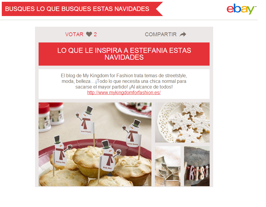 Para crear un tablón y participar en la posibilidad de ganar premios, sólo tenéis que visitar este : Link para crear Tablón de Navidad en eBay. ...¡y seguir las instrucciones! ¡Date prisa que tienes hasta el 8 de diciembre para crearlo!