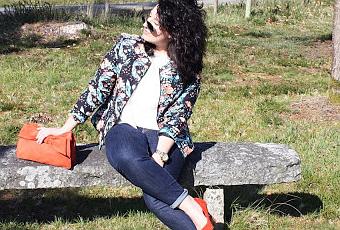 Os presento las dos combinaciones que he creado con ella, como era la primera vez que la ponía le dejo todo el protagonismo a la cazadora combinándola con vaqueros y blusa blanca.