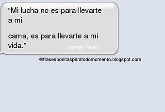 “Mi lucha no es para llevarte a mi cama, es para llevarte a mi vida.”  -Escritor Germán Renko.