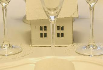 Well, last Friday I showed you my Christmas Eve table setting. Today I would like to show you the table setting I made on Christmas Day. Much more simple than the previous one , I decided to set a total white table with only some touches of green in the centerpiece and a sequin ribbon which I used as napkin ring together a white hearts made of modeling paste. I made the centerpiece using pine branches a white candle and silvered pinecones inside a vintage tureen which my mother lent me. The cherry on the pie were two little candleholder-houses which gave a nordic-style.