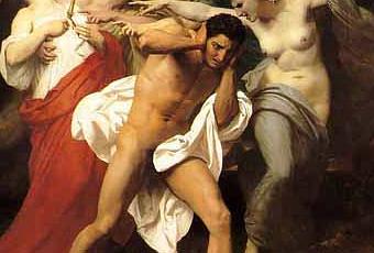 Las Furias, en representación de Némesis, persiguiendo a Orestes