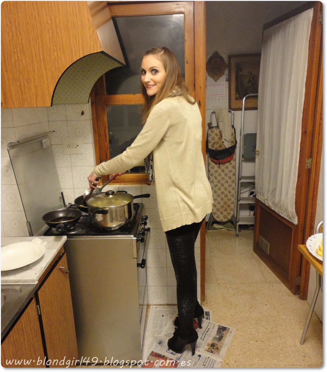 Yo con las gambas :) y sí, la cocina es algo pequeña.. no es que yo sea tan grande xD