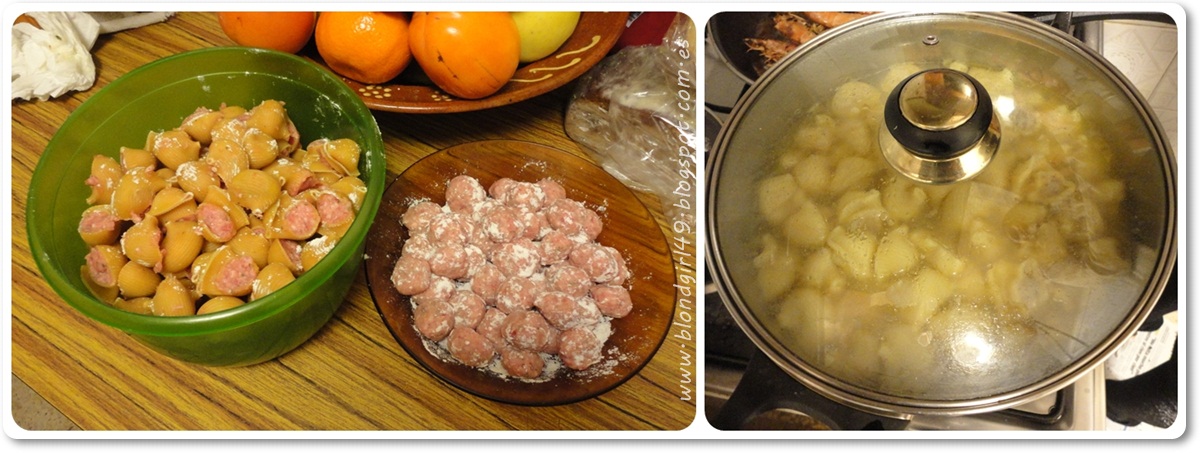 - Preparando la sopa rellena (o sopa de Galets), este año cuando llegué ya la habían rellenado :P así que con la carne que sobró hice albondiguitas para comer otro día