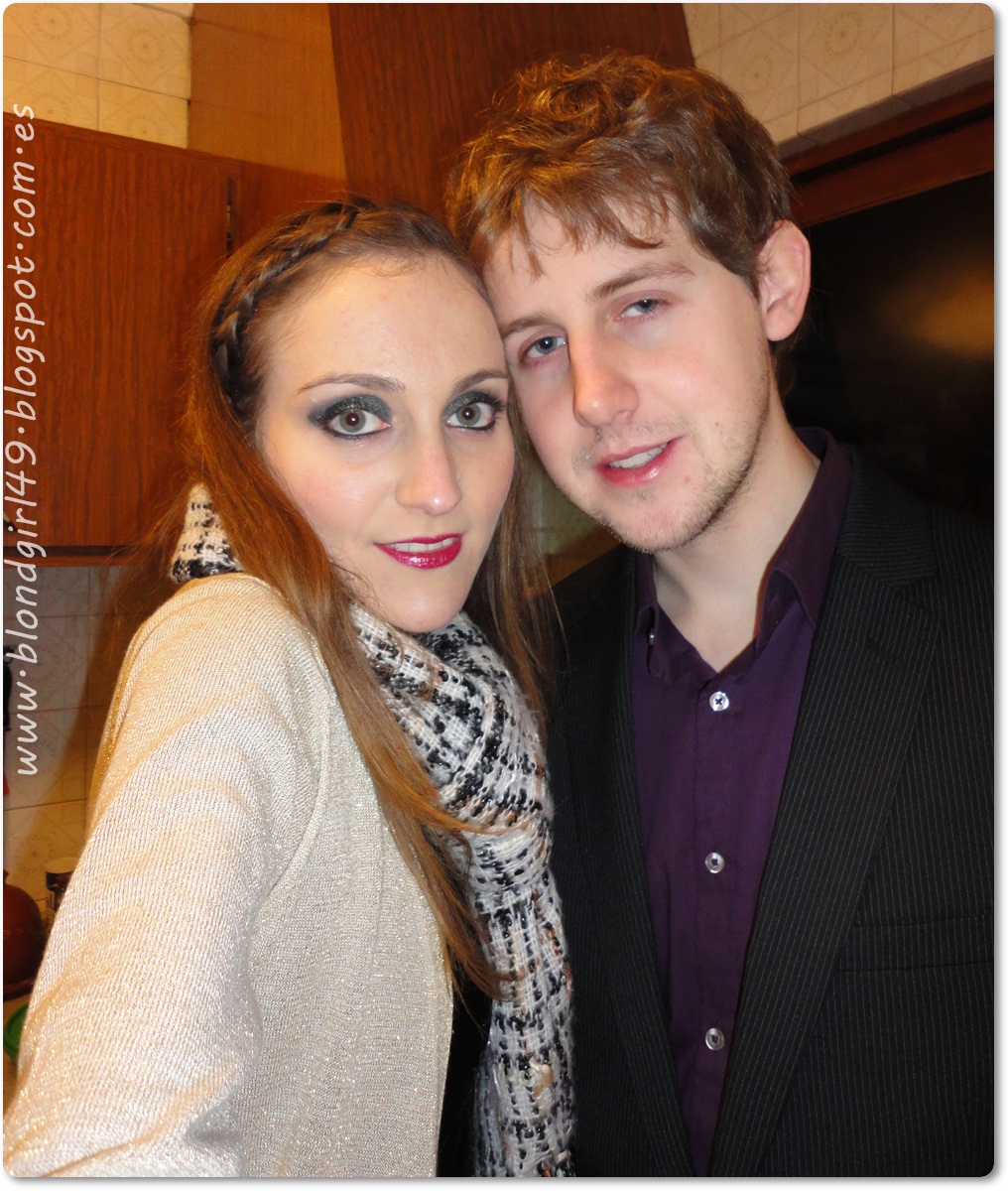 Hoy vengo con una entradita de algunas fotos de mi Nochevieja que la pasé con mi chico y mi madre en casa de la pareja de mamá. Como ya tengo por costumbre fui por la tarde para ayudar con los preparativos (que no son pocos) y mi chico vino conmigo :P aunque más que ayudar preparando cosas ayudó comiendo jajajaja. Ya en casa preparé tartaletas de crema y frutas para el postre y también salsa para acompañar al segundo plato, así que no tuve demasiado tiempo para arreglarme.... me hubiera gustado tener más tiempo y ponerme pestañas postizas, creo que así el look hubiera quedado mejor (porque me veo fatal en las fotos) pero ya se sabe que hay que poner prioridades así que las pestañas se quedaron sin tiempo jajaja