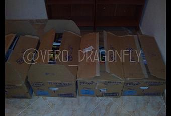 Estas son las cuatro cajas que viajaron repletas de libros más de cuatro veces. No tenía más cajas disponibles, el resto eran muy pequeñas, así que nos tuvimos que apañar con lo que había, motivo por el cuál tardamos algo más en transportar todo, ya que había que rellenar, llevar, vaciar y vuelta a empezar.La imagen que veis es de la última vez que fueron transportadas. Las pobres acabaron destrozadas, pero no tanto como quienes las llevábamos.