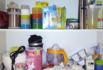 bufff mil "chochos" (como se suele decir)La cosa es que reorganicé la cocina y dejé un armario entero libre, SÓLO para las cosas de Álex.Pero, tengo la sensación de que, como los armarios son grandes, se desaprovecha el espacio si los objetos no pueden apilarse.Aquí mi caos,..