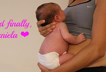 En cuanto llegué a los 8cm de dilatación empezó mi expulsivo. Me dijeron que empujara y yo empujé. Fueron 4 empujones muy fuertes, lo dí todo para que mi hija saliera rapido y sufriera lo menos posible. Ya no podía más… estaba muy cansada. Y entonces… llegó ella. A las 18:04 h .Ese momento fue mágico. Noté perfectamente como salía de dentro de mi y me la pusieron encima. Recuerdo perfectamente su olor, su calor y su llanto. Justo en ese momento le dije: – Daniela, que pasa?? Ella me miró, paro de llorar y me agarró fuerte mi dedo. Y se puso a succionar mi pecho como si lo hubiera hecho mil veces antes. (Os hablaré también de lactancia en otra ocasión) Lo recuerdo y me emociono.