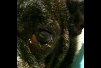 Pierre, por una mala praxis, le operaron los dos ojitos para quitarle el tercer lagrimal que se le había salido, pero al quitárselo por completo, lo dejaron sin gran parte de la lubricación natural.
