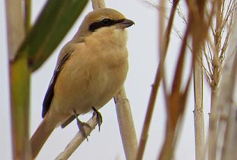 ¡¡¡Ahí está!!!! ¡¡¡A sólo unos seis metros delante nuestro, posado sobre una caña y cantando tranquilamente y sin prestarnos atención!!! Lo vemos a placer, nos deja hacerle fotos sin problema, no recela en absoluto, mucho mas confiado que nuestros alcaudones autóctonos. Resulta sorprendente esa confianza y su entrega al canto, entreverado de imitaciones de carricerín. Y, sobre todo, que de todos los puntos donde podíamos habernos puesto a hacer la espera, y pese a habernos alejado cien metros del sitio donde fue observado, por no incordiarle, nos hallamos detenido precisamente a seis metros de donde el ave ha decidido dar su concierto matinal.