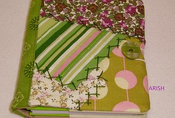Como ésta libreta es para mí y sólo para mí, los trocitos de telas elegidas tienen tonos verdes.No he tenido que comprar nada porque hasta tenía la libreta, así que mi stash de materiales sigue bajando y os aseguro que voy a hacer unas cuántas más ya que me gusta tener cositas hechas para cuando surge hacer un obsequio.