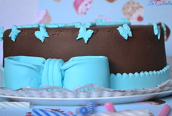 Esta es mi primera tarta de fondant, la hice para el cumpleaños de mi madre, la pobre mia es celiaca e intolerante al huevo asi que los bizcochos que hice fueron sin gluten y sin huevo respectivamente, digamos que me meti en un embolao que para que te cuento y mas siendo mi primera tarta de fondant, estuve casi una semana liada con ella, el primer dia hice las decoraciones en fondant que llevaría la tarta ( el lazo, las mariposas..) para dejar que se secaran y endurecieran bien, no necesite usar cmc ( este ayuda a endurecer antes el fondant para modelar ), una vez listas las decoraciones me puse manos a la obra con los bizcochos los cuales es mejor hacerlos minimo unas 24 horas antes de cortarlos y rellenarlos , para que estén mas compactos y no se desmiguen tanto al cubrirlos. En principio iba a hacer solo un bizcocho ( un sacher de chocolate ) pero cuando termine me di cuenta de que quedaría demasiado bajo y las tartas de fondant deben ser mas bien altas ya que esta pasta es muy dulce y necesita ser compensada con una buena capa de bizcocho, así que sin pensarlo me puse a hornear otro bizcocho ( de vainilla un poco mas pequeño para darle un toque diferente, así que si queréis usar la receta de este bizcocho tendréis que hacerla doble para que os salga un bizcocho igual de grande que el sacher). Pasadas las 24 horas de reposo de los bizcochos me dispuse a cortarlos en capas, rellenarlos y cubrirlos con la capa de ganache, este fue para mi el paso mas extresante ya que debe quedar una tarta con bordes lisos y rectos para después poner el fondant y que no se noten las imperfecciones de la tarta. Al final el esfuerzo tuvo su recompensa jejeje, me quedo muy bien para ser la primera vez que lo hacia, el único problemilla que tuve fue que el fondant se me agrieto un poco al colocarlo sobre la tarta creo que fue por que no lo amase lo suficiente y estaba aun un pelin duro, la próxima vez seguro que no me pasa, aun asi quedo preciosa y a mi madre le encanto que era lo importante asi que hay os dejo la receta y el tutorial paso a paso, espero que os guste.