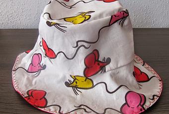 Gorro reversible... Por un lado tela de ratones coloraos como mi peque.