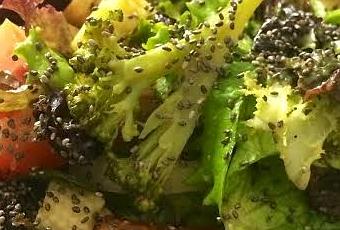 Amo la Chía, se la pongo a todo en mi comida y jugos! 1 cuchara de sopa pequeña al raz es suficiente para incorporarla a tu ensalada y a disfrutar!!