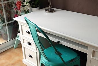 Bueno pues hoy os quería enseñar la réplica de silla Tolix que me he agenciado para el escritorio. Lo cierto es que contrasta un poco pero creo que queda bastante bien, sobretodo porque el color combina con la escalerilla que hice. No es como el modelo A original pero después de darme varios paseos por tiendas de Barcelona me decidí por ésta del Natura de la calle diagonal. Vi algunas réplicas exactas pero estaban hechas de chapa y la verdad perdía todo el encanto. Miré una muy parecida un poco más barata pero las muchas gamas de colores solo las encontré en el Natura. Había rojo, verde muy clarito, blancas, metálicas, etc. pero la que mas me gustó fue ésta, el desgastado está bastante bien hecho con un toque realista de oxidación en algunos puntos. La verdad es que no me salió barata, pero me hacia ilusión desde hacia meses y no encontraba ningún sitio que me convenciera calidad-precio, así que fui a la que más me gustó. También probé de pedir a Infurn, una tienda de muebles online, pero hay que esperar como 5 meses para que te la entreguen y por lo que leí a veces más y me pareció una estafa esperar ese tiempo para una silla. Veremos si en algún viaje a Francia me hago con una original pero con ésta ya paso el mono. Espero que os guste!
