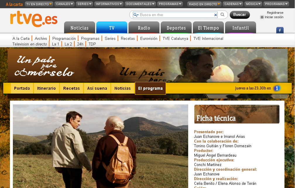 Los jueves a las 23.30h tenemos una cita con Imanol Arias y Juan Echanove que, a través de 'Un país para comérselo', nos adentran por las tierras de España para presentarnos la gastronomía y el paisaje de los lugares más recónditos de nuestra geografía.