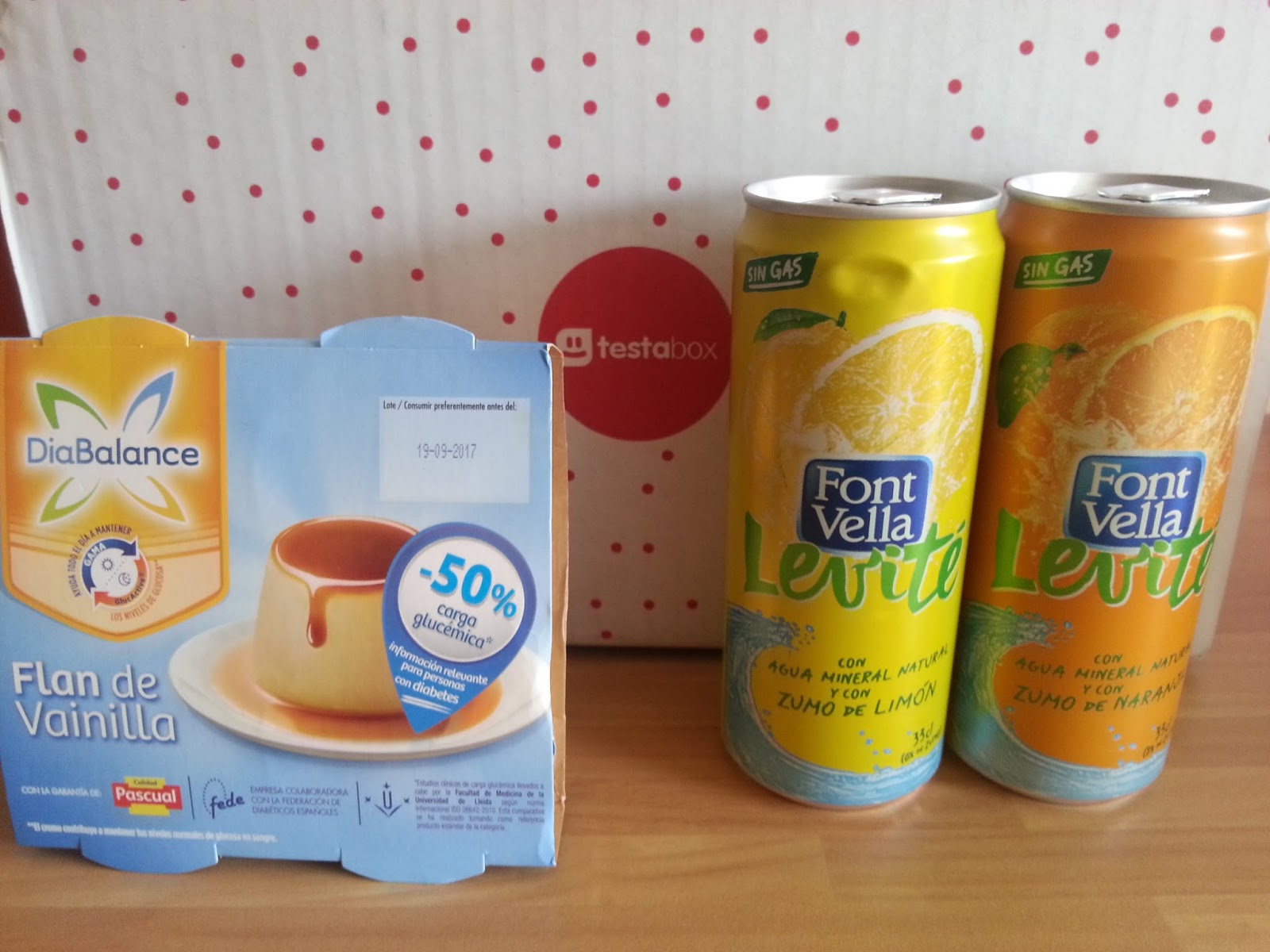 El flan de Vainilla de Diabalance de 2.12€ es un postre apto para diabéticos de textura cremosa y muy rico.Los refrescos de agua mineral natural Levité de Font Vella de Limón y Naranja de 0,65€ nos han encantado.