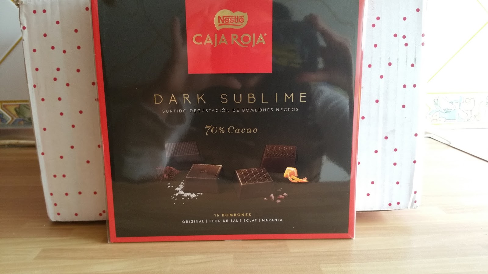 - Caja Roja Dark Sublime Nestlé con un sabor más intenso a cacao que deleitará a todos los amantes del chocolate contiene 16 bombones negros con un 70% de cacao.(4.99€)
