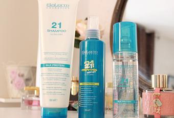- 21 Express All-In-One con proteína de seda y queratina. Es como un embellecedor del cabello, aunque el producto en sí me gusta, no me parece adecuado el modo de aplicación, ya que el producto es muy denso y el spray minúsculo, y suele salir modo "chorro" en vez de pulverizado. Para ir utilizándolo he desenroscado el cabezal y con una pequeña avellana lo he repartido de medios a puntas. El olor es riquísimo, y el cabello queda muy sedoso, eso sí!