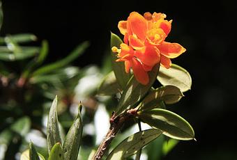 Flores solitarias, pequeñas, de color amarillo anaranjado.