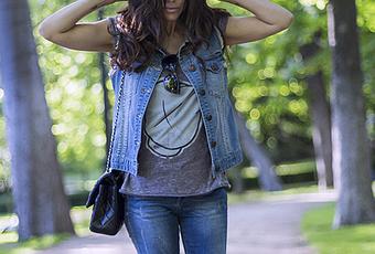 El mismo bolso de ayer en un look totalmente diferente en el que manda la comodidad. Uno de esos outfits que me pongo para pasear a la peque por el parque más cercano a casa. Los chalecos vaqueros siguen siendo tendencia y me encantan! combinados con shorts y camisetas, con vestidos largos o cortos y vaporosos, o encima del bikini si estás en la playa o la piscina. Sea como sea, quedan chulísimos, no te parece?