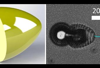 microrobot en forma de bala con una cavidad interior programada, nadando en H2O2