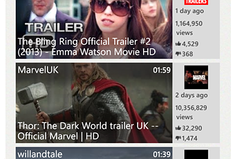 - Se pueden pinchar videos, listas de reproducción, canales y hasta búsquedas en la pantalla de inicio como Mosaicos Dinámicos (Live Tiles), para tener acceso rápido. El Live Tile gira para mostrar el último video de las suscripciones del usuario o el vídeo más popular.