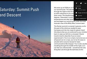 Es fácil agregar texto e imágenes desde OneDrive y su dispositivo. También puede añadir vídeos, mapas, tuits, vines, gráficos interactivos, elementos gráficos y archivos GIF.