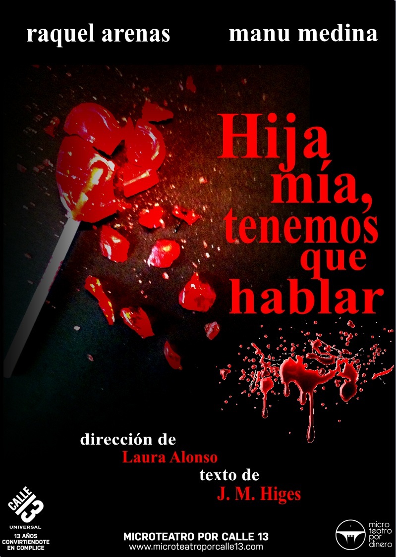 El día 19 de septiembre, yo Manu Medina estreno en Microteatro Por Dinero, la función -Hija mía, tenemos que hablar-, un texto de J.M. Higes, un autor con una frescura y un dominio de la situación dramática fuera de lo normal y con un control del ritmo que en este caso a mi querida partener y a mi nos facilita y mucho, el acercamiento y la comprensión del texto, te felicito Pepe, tienes un talento inusual.