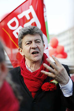 Apoyado por el sindicato CGT y por el Partido Comunista Francés (PCF) en un gesto sin precedentes desde 1974, Mélenchon protagonizó, en las elecciones para la presidencia, mítines multitudinarios en las principales ciudades de Francia, incluido un acto en la Plaza de la Bastilla de París al que acudieron 120.000 personas. Hijo de un empleado de correos y de una profesora francesa de origen español, Mélenchon ensalzó la necesidad de enarbolar la “revolución cívica” contra los mercados. Buscó presentarse a sí mismo como la voz de los trabajadores y de las clases medias empobrecidas, de los parados, de los jóvenes y de los indignados, de los que sufren con más dureza la embestida de una crisis económica de la que no se ven responsables. Apostó por la regularización de los inmigrantes indocumentados, la multiplicación por dos del presupuesto de investigación o por nuevas contrataciones en el sector de la educación. Y aunque era defensor del euro, propuso un referéndum sobre el tratado presupuestario europeo. De esta manera, pasó del 5 al 15% de apoyos en tres meses. Pretendía convertirse en el tercer hombre del Estado, tras Sarkozy y Hollande, y relegar al cuarto lugar a la ultraderechista Marine Le Pen. Un objetivo nada sencillo, teniendo en cuenta la remontada de la candidata ultra en los últimos sondeos.