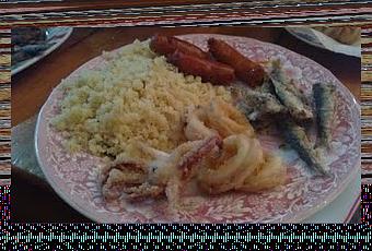Las sirves con lo que te apetezca, en mi caso hoy les puse calamares y sardinillas fritas, un poco de chistorra... a veces con pinchitos, morcilla, tocino...