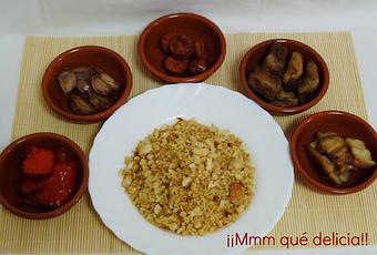 En casa se hacen todos los ingredientes por separado, pues no a todos nos gustan los mismos y además porque de postre tomamos las llamadas migas canas, es decir las migas con azúcar y leche y las que sobran las tomamos al día siguiente en el desayuno con café con leche (siempre hacemos de más para que sobren).