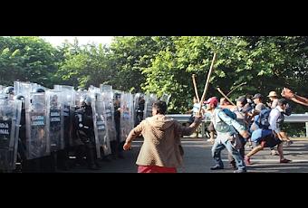 Chiapas, México.- La mañana de hoy jueves 04 de noviembre, un grupo de migrantes, presuntamente del grupo de rezagados que alcanza por lo menos tres mil personas, se enfrentó a elementos de la Guardia Nacional y del Instituto Nacional de Migración.