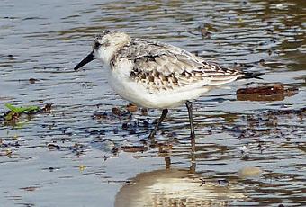 También un pequeño grupo de correlimos comunes Calidris alpina descansaba entre los abundantes montones de ocle que había depositados en la playa.