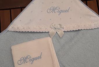 Una toallita y una gasita personalizada para un bebé que nació hace poquitos días.