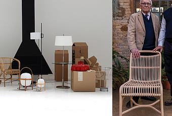 Miguel Milá y su hijo Gonzalo Milá, con quien comparte autoría de la silla “Gata” producida en rattan para Expormim.