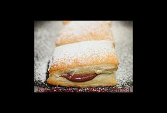 - Extendemos la lámina de hojaldre, cortamos los trozos del tamaño deseado. - Disponemos los trozos de hojaldre en la bandeja del horno dejando suficiente espacio entre ellas. - Metemos la bandeja en el horno precalentado a 200º, unos 5-6 minutos, hasta que estén ligeramente dorados (cuidando que no se quemen). - Entretanto hacemos la crema pastelera de chocolate, la dejamos enfriar. - Dejamos enfriar el hojaldre, lo cortamos por la mitad, rellenamos con la crema pastelera y espolvoreamos con abundante azúcar glas. - Los metemos en el frigorífico y si tenemos la suficiente “paciencia” intentamos dejamos por lo menos un ratito para servirlos fríos.