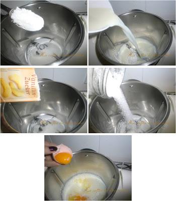 Mientras precalentamos el horno a 200º, hacemos una crema pastelera. ¿De que manera la podemos hacer? de varias, elegir la que más os guste. Yo esta vez la he hecho en la THMX